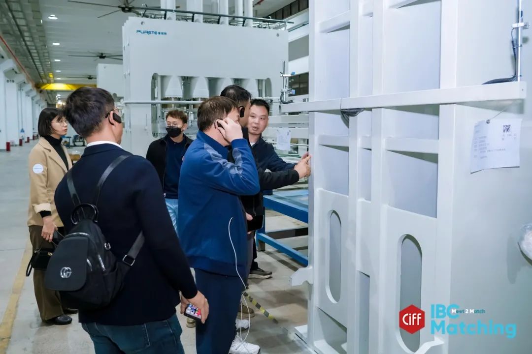 Under the guidance of professional guides, the Vietnamese representatives focused their visit on the assembly workshop and sample testing center of the production base. They successively toured various production line equipment including roller coating, spray coating, painting, flat lamination, and flat pressing.